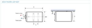 | Thông số kĩ thuật 15 đến 50L ( treo tường ngang) | |||||